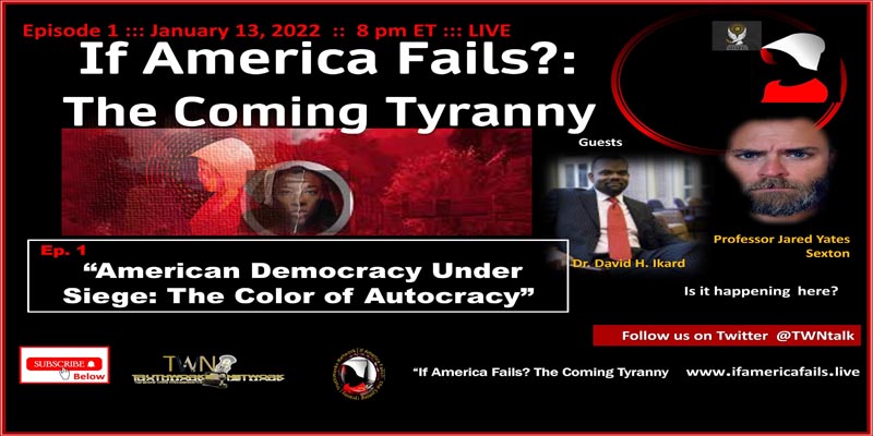 WATCH Prof. Jared Yates Sexton, Associate Professor, Writing and Linguistics, Georgia Southern University-Statesboro – LIVE – Thursday, January 13, 2022, 8 pm ET, on the TruthWorks Network YouTube channel, when he joins the PREMIERE of “If America Fails?: The Coming Tyranny,” in discussion on democracy as seen in The Handmaid’s Tale and threats to America’s system.