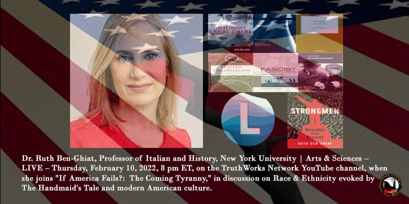 Dr. Ruth Ben-Ghiat Joins 2/10/22, 8 pm ET Webcast of “If America Fails?: The Coming Tyranny”