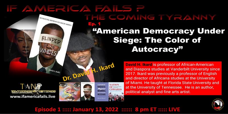 @ASoulAFire @JaniceOCG #BlindedByTheWhitesWhyRaceStillMattersIn21st-CenturyAmerica is a book by @blkeducator & @IUPress. Dr. David H. Ikard is live on Thurs., Jan. 13 at 8 pm ET, w/ “If America Fails?” on the TruthWorks Network YouTube channel, for our discussion on democracy in The Handmaid’s Tale & threats in current American culture.