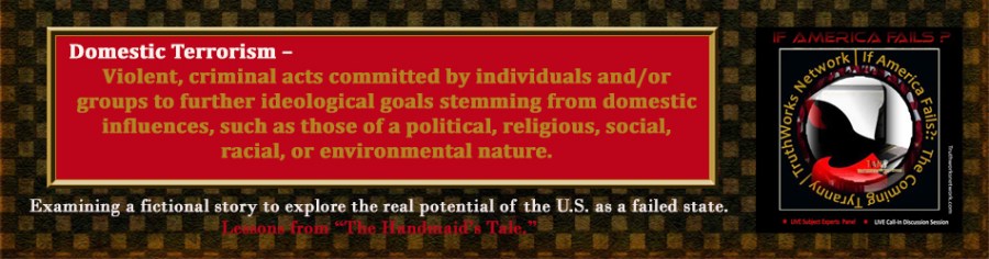 The If America Fails? webcast series features a weekly panel of subject matter experts in the themes presented by the book and Hulu series, The Handmaid’s Tale. Some of the themes are fascism, religion and civil war – and of course, the status of women in a highly controlled, authoritarian theocracy. If you’re a fan of the book or TV series, or an expert in the subject areas, let us know of your interest in appearing on the panel or joining the live public chat.