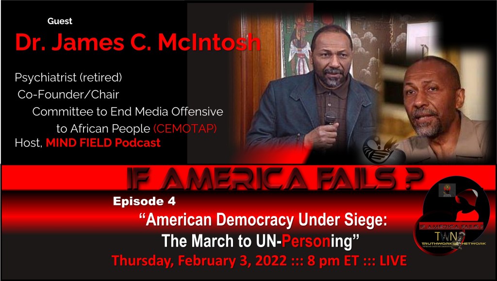 “Un-Personing” – a process of disassembling human rights that encourages people to see themselves as unable to change the oppressive elements that impact their lives. We look to Dr. McIntosh for assistance in analyzing how mental health issues are triggered, created, and most likely un/under address in such our society, creating a perfect storm for a fractured democracy. . We ask to what extent will our tolerance of the problems of a flawed mental health system in an existing compromised democracy lends to the potential of a failed state.