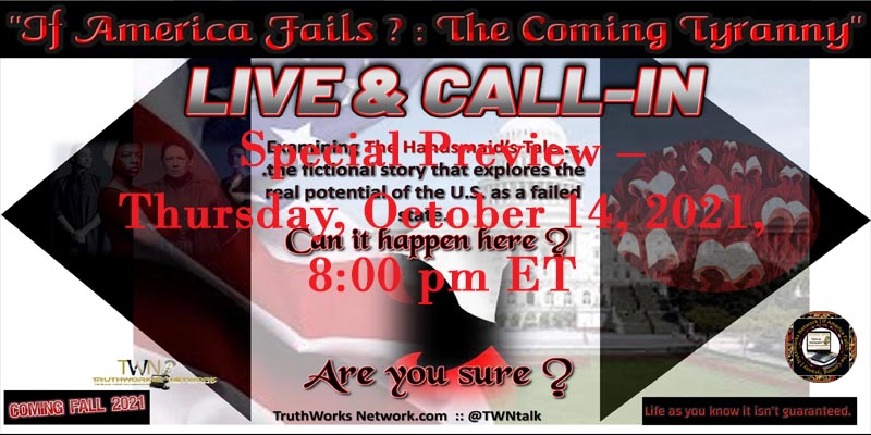 Add your voice to a new discussion series on the possibility of America as a failed state that devolves into tyranny – If America Fails?: The Coming Tyranny – Coming this Fall, 2021.