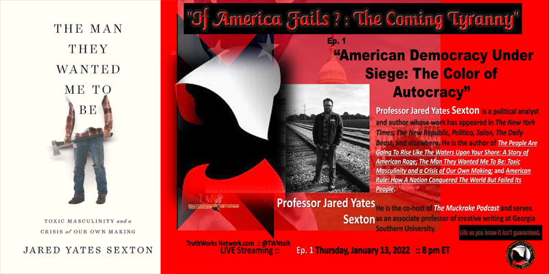 @ASoulAFire @JaniceOCG #AnEndToAllThings @AtticusBooks is 1st book by @jysexton. Jared Yates Sexton joins premiere of “If America Fails?” Thurs., Jan. 13, 2022, at 8 pm ET, on the TruthWorks Network YouTube channel.