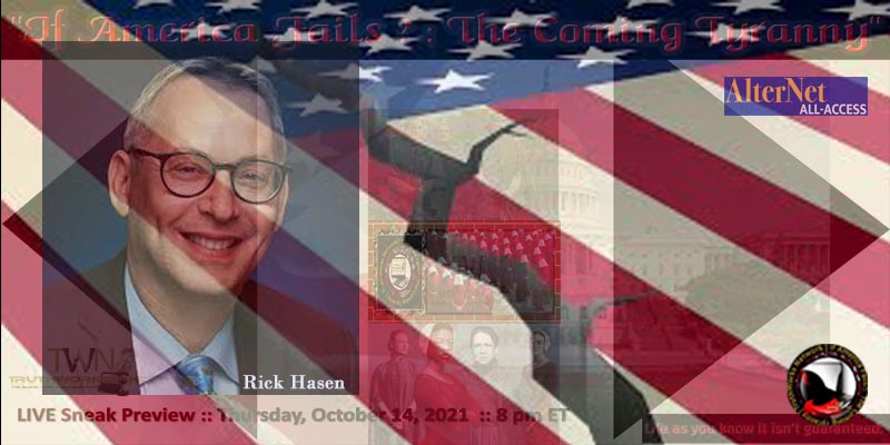@ASoulAFire @JaniceOCG @HandmaidsTaleOx We’re prepping for the 10/14, 8 pm Sneak Peek of “If America Fails: The Coming Tyranny,” relating current events to The Handmaid’s Tale. Join us! @alexvhenderson interviewed @rickhasen for @AlterNet on election subversion, a current threat to democracy. #FightFascismNow